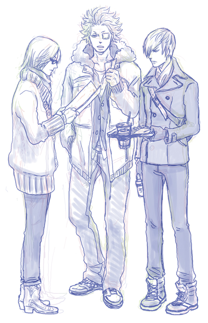 あんなブーツも履いちゃうと思いますよ。オフの時は結構ラフでもいいと思ってます。メンズファッション誌っぽい感じで。三成の内股は皆さん可愛いと仰いますね…無意識に描いちゃいましたが、気持ち悪いって言われなくてよかったです。チカちゃんはいつもあんな感じで。みんな仲良く遊べばいいじゃ~ん!